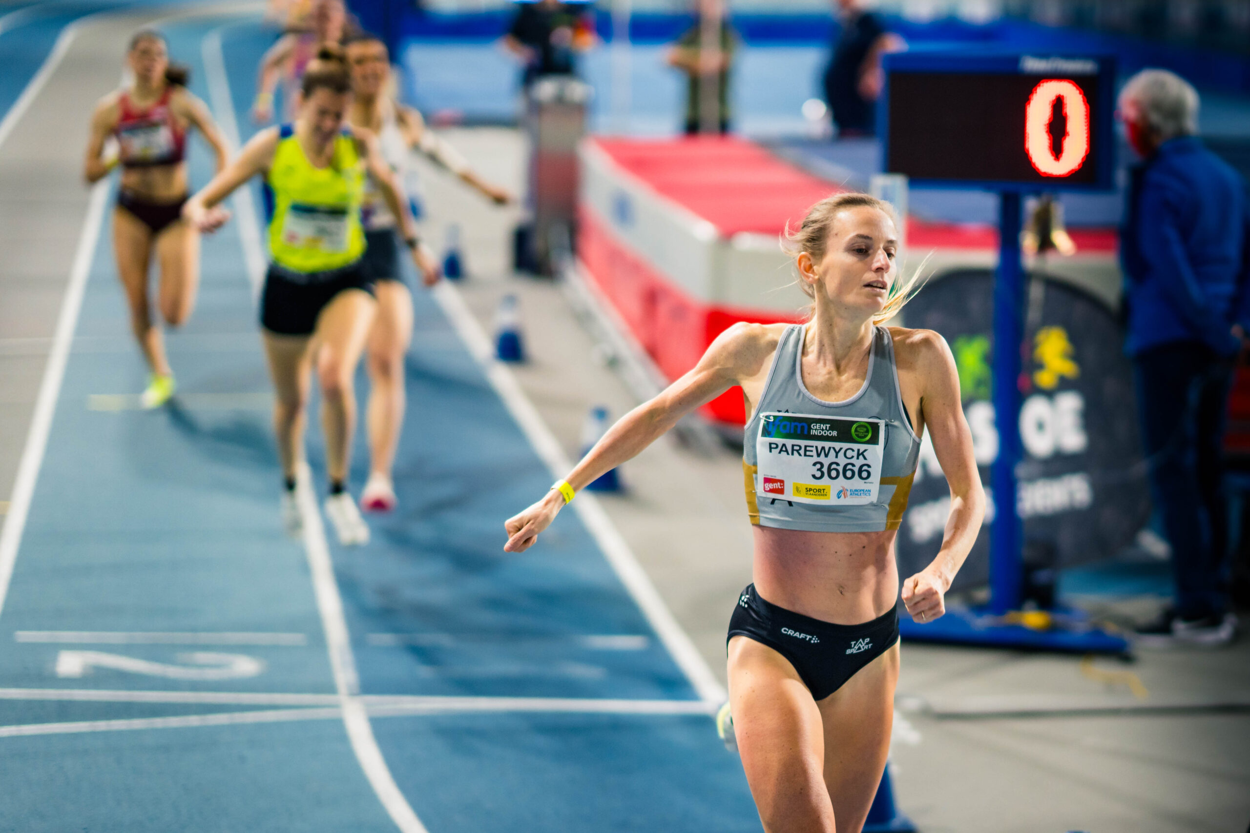 Mariska Parewyck zit nooit verlegen om een PR waarmee ze haar man, trainer en IFAM-organisator Kim Barbé loon naar werken kan geven. Dit keer kwam ze aan de start van een 800m waar ze een toptijd van 2’03″69 had staan. Die chrono van vorig jaar zou ze helemaal verpletteren. Parewyck ging de indoorpiste vier keer rond in 2’02″40 en maakte zo een stevige sprong naar de vierde plaats in de Belgische toplijsten. Ook haar eigen V35-BR bij de masters moest er uiteraard aan geloven. De nationale WK-limiet, die volstaat voor een selectie op basis van de ranking, bedraagt 2’01″16.