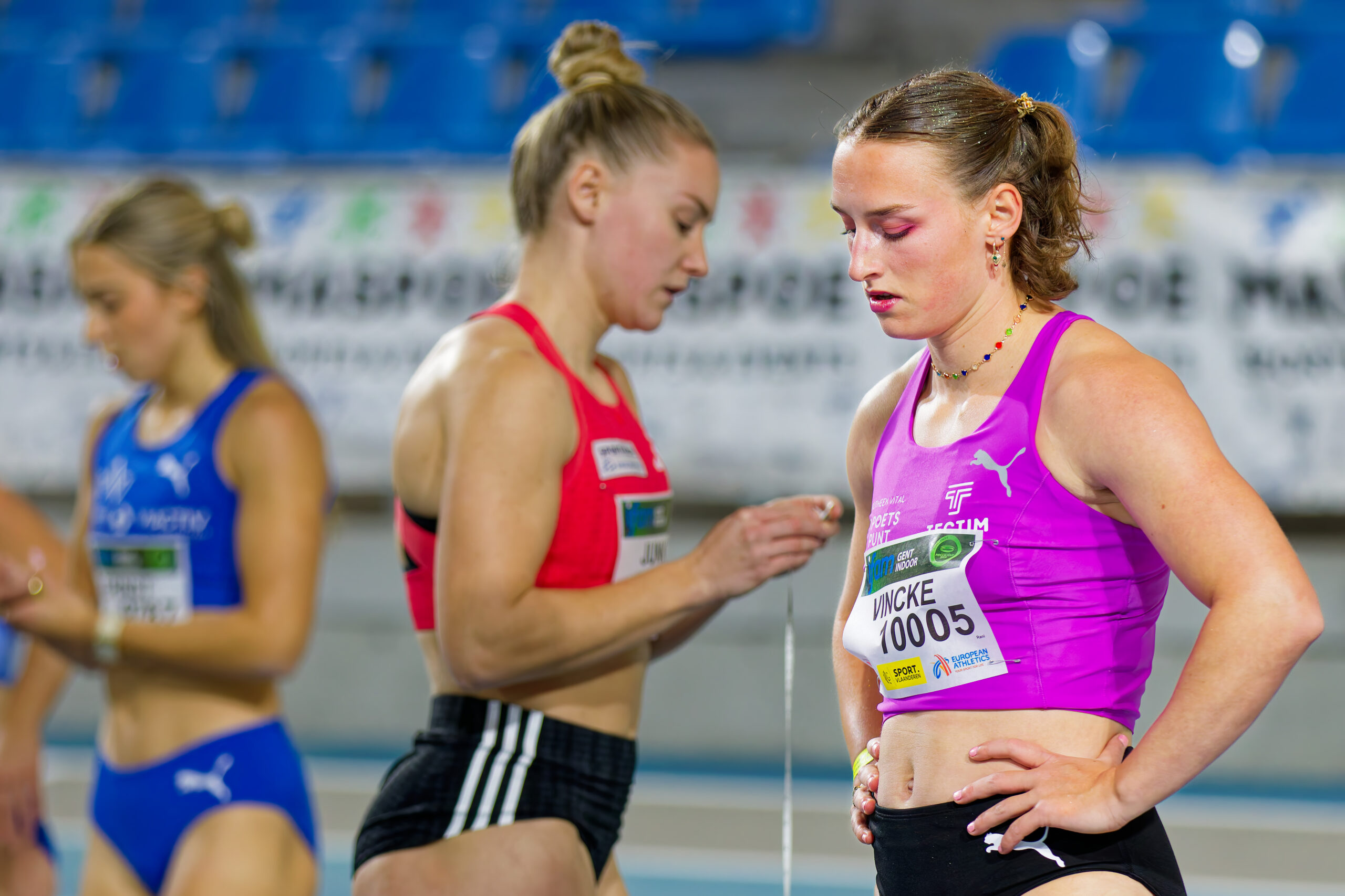 Ook op de 60m werd in Gent aardig doorgesprint. Belgian Rockets Rani Vincke en Janie De Naeyer stuwden elkaar vooruit richting straffe chrono’s van respectievelijk 7″30 en 7″32. Voor winnares Vincke een seizoensbeste op twee honderdsten van haar PR, voor De Naeyer een nieuwe recordtijd. Een dag later zou De Naeyer dat kunstje in Louvain-la-Neuve bijna nog eens overdoen met een mooie 7″33 ter bevestiging. Op plaats drie sprintte Camille Sonneville naar 7″43, een evenaring van haar PR. Op de 200m gooide de 19-jarige belofte haar pijltje opnieuw in de roos: de winst en een topchrono van 23″82 waren haar deel.