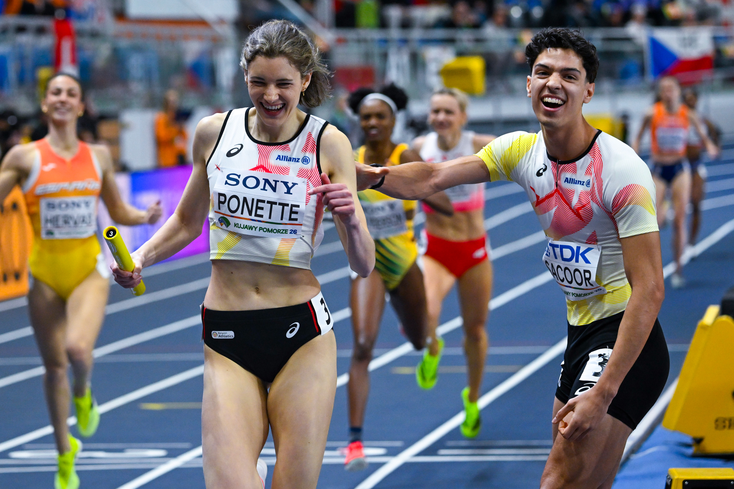 België was op dit WK naar de mixed relay getrokken met gemilderde verwachtingen. Daniel Segers en Naomi Van den Broeck waren namelijk uitgevallen, wat het team op papier tijd zou kosten. Met Jonathan Sacoor, Ilana Hanssens, Julien Watrin en Dylan Borlée was het viertal nog steeds sterk, al waren concrete ambities plots moeilijker te begroten. Sacoor ging weg als startloper en deed het vanuit baan drie uitstekend. Hij liep een snelle eerste ronde, kwam als eerste naar binnen en sloeg meteen een kloofje.
